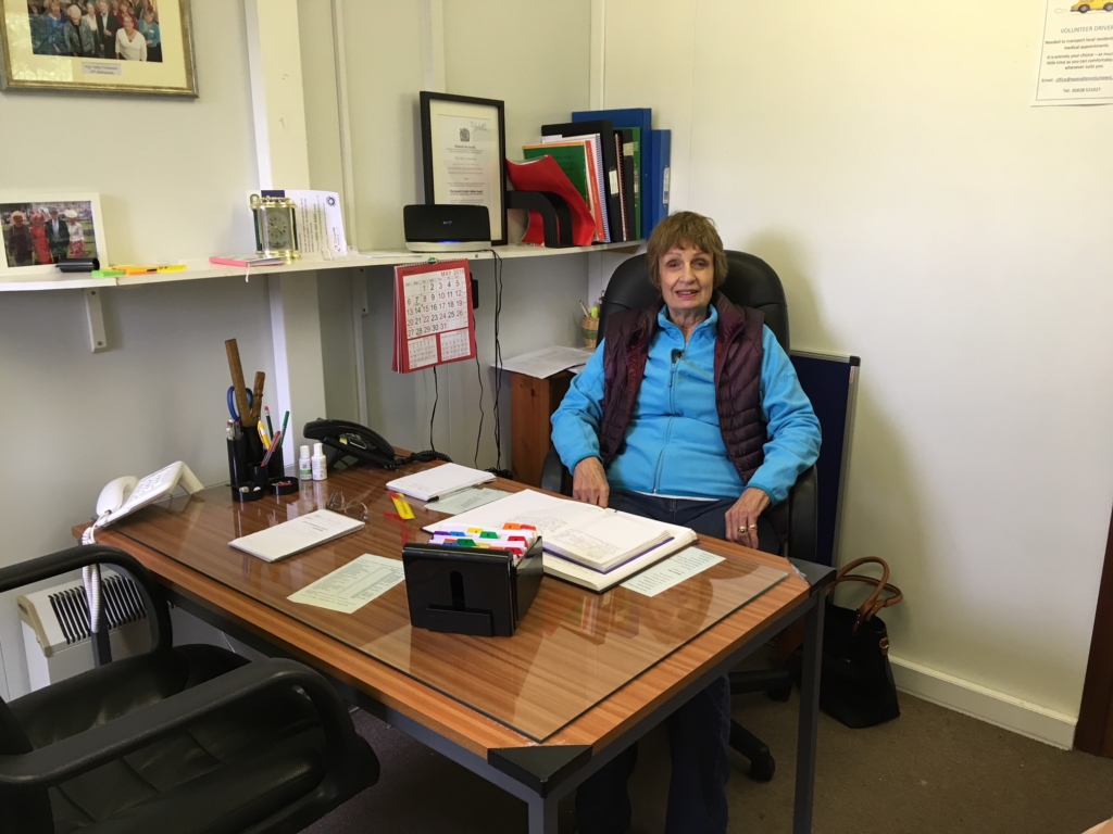 Office volunteers are at the centre of the organisation and take calls on most of the services. In particular they co-ordinate the Community Transport Scheme, matching drivers and clients and organising pick up times. Regular team members work in pairs one morning a week and they are backed up by reserves who fill in flexibly.